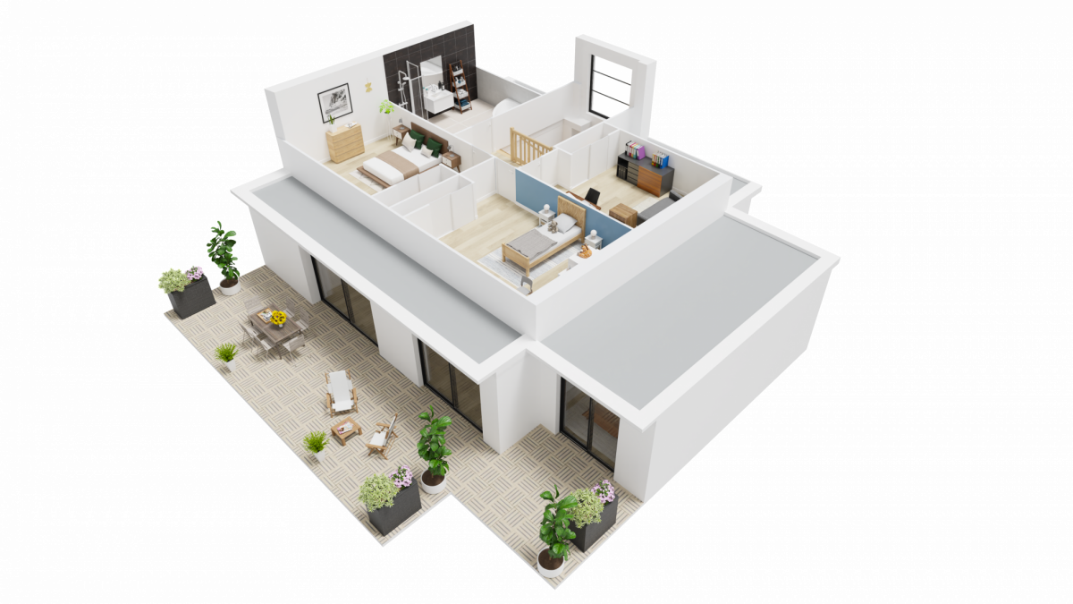 Avec ses 130,06 m² habitables et son garage intégré, ce modèle au design contemporain est idéal pour les familles à la recherche d’un habitat spacieux et élégant.