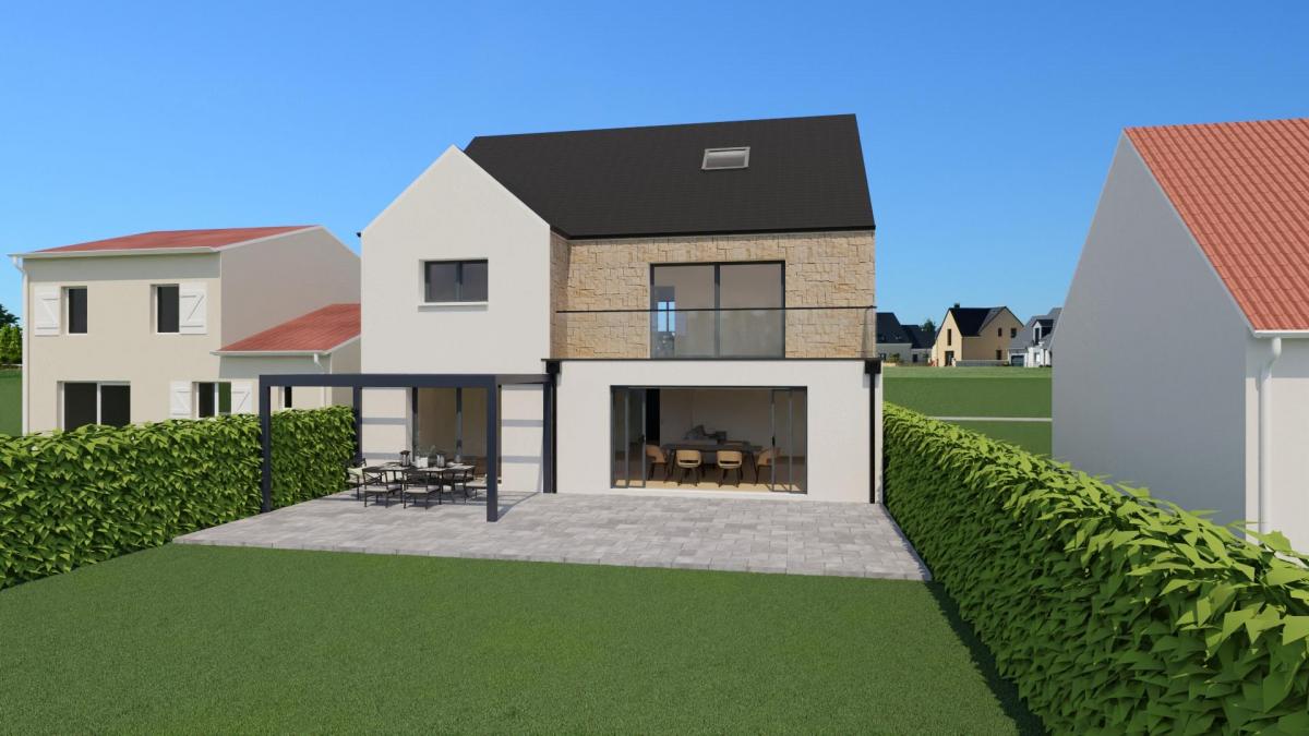 Prix indiqué hors frais annexes, aménagements extérieurs et finitions intérieures. Ce prix n'inclut pas les frais de notaire sur le terrain. Terrain proposé par un partenaire foncier, sous réserve de disponibilité. Projet réalisé dans le cadre d'un Contrat de Construction de Maison Individuelle (CCMI). Visuel non contractuel.